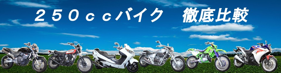 現在、新車、中古車で手に入る、250ccバイクを徹底比較!!加速性能は!?、最高速度は!?、街乗り走行は!?、高速道路の走行は!?、カスタムは!?、峠走行は!?、維持費は!?気になる7項目を徹底的に比較!!